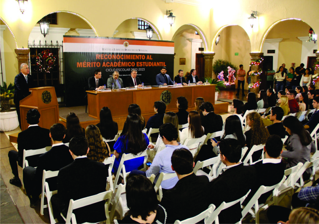Al entregar el Reconocimiento al Mérito Académico Estudiantil del Ciclo Escolar 2022-2023, a 54 estudiantes de la Licenciatura en Derecho, el  Mtro. Rodolfo Campoy de la Vega, Rector de la Escuela Libre de Derecho de Sinaloa comentó que “una de las celebraciones más trascendental para nuestra Casa Estudios es precisamente esta ceremonia en la que reconocemos a las Alumnas y Alumnos que se han destacado por su alto aprovechamiento académico.