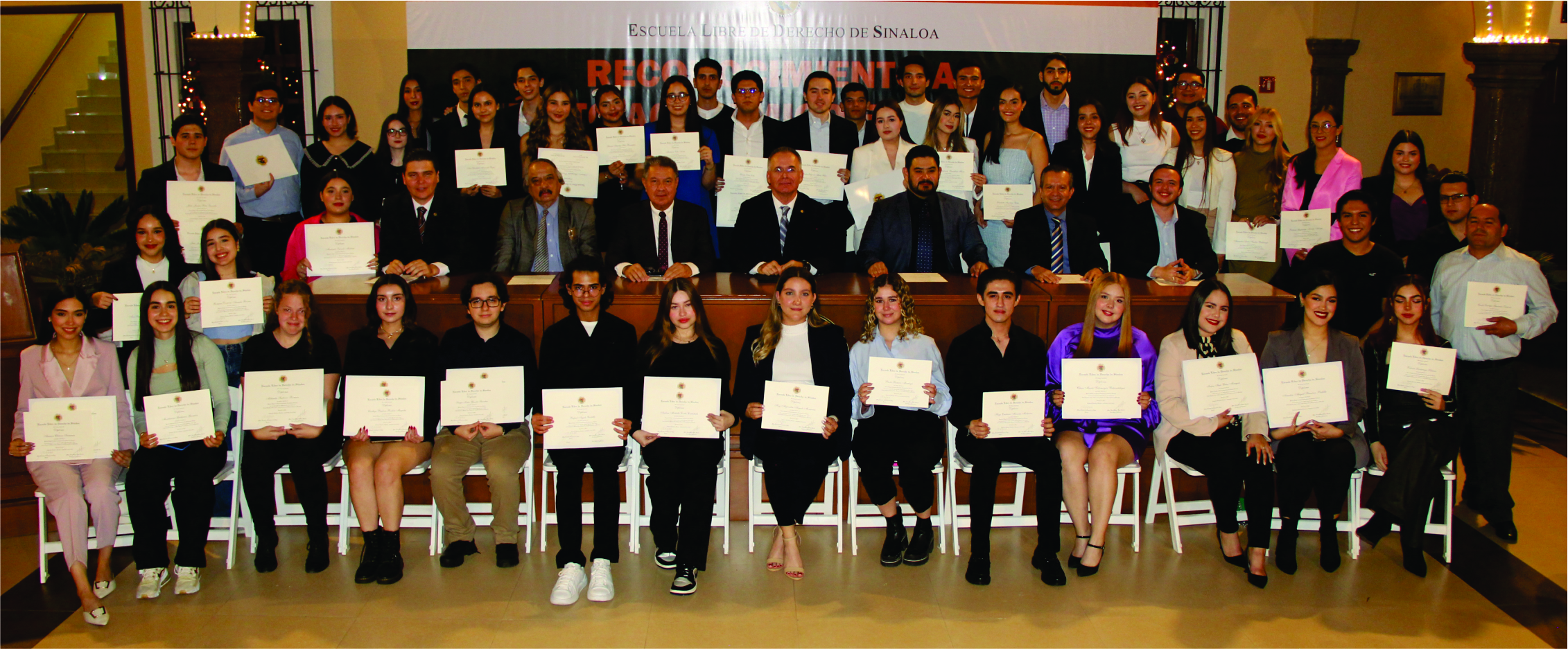 El acto estuvo presidido por el Mtro. Rodolfo Campoy de la Vega, Rector de la ELDS, el Mtro. José Carlos Álvarez Ortega, Rector Honorario y Catedrático de la Institución; Lic. José Luis Zavala Beltrán, Director del Bufete Jurídico y Catedrático, y los Mtros. José Irineo Nevárez Benítez y Rafael Rodríguez López, Catedráticos, así como el Mtro. José Miguel Vega Pereda, Secretario Académico de la ELDS, y el Presidente de la Sociedad de Alumnas y Alumnos, José Ernesto Bonilla Ruiz.