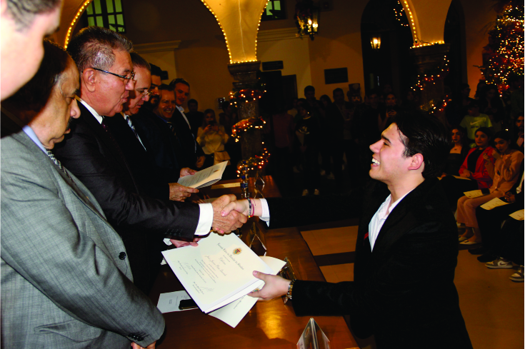 El Rector de la Institución agregó que “los promedios que ustedes han obtenido no están disociados de nuestro compromiso por aportar a su formación integral como personas, por lo que no es coincidencia ni casualidad que precisamente quienes destaquen por su integridad y responsabilidad, en esta noche sean reconocidos y homenajeados, y ello, sin lugar a dudas, es nuestro mayor orgullo y satisfacción”.
