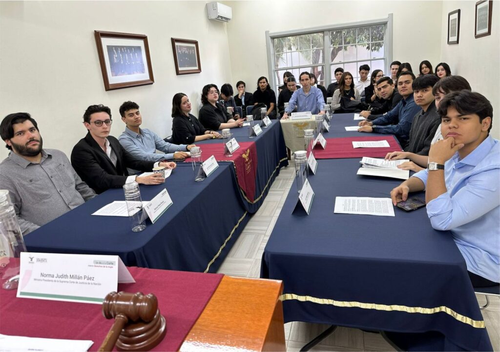 Alumnas y Alumnos de Primer Grado Grupo 3 de la Escuela Libre de Derecho de Sinaloa participaron en el Programa “Un Día en la Corte” de la Casa de la Cultura Jurídica de la Suprema Corte de Justicia de la Nación en Culiacán, donde trataron el tema “Derecho de Acceso de las Mujeres a una Vida Libre de Violencia”.
