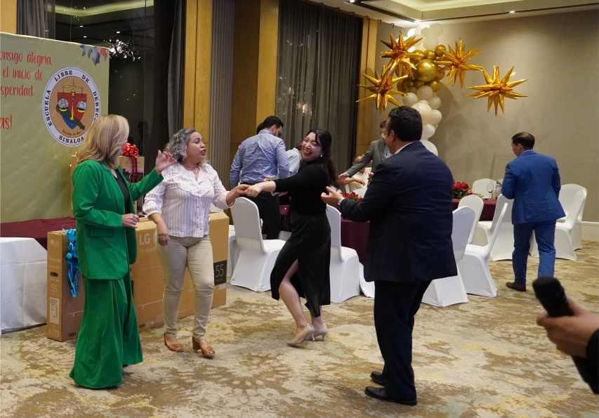 Con una comida de fin de año, regalos, música y el siempre grato sabor de la buena compañía, las Maestras y Maestros de la Escuela Libre de Derecho de Sinaloa celebraron el fin de año, en una agradable tardeada realizada en un salón de esta ciudad.