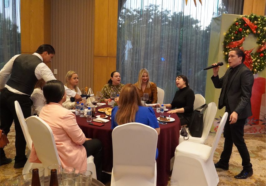 La tradicional posada, con los adornos navideños, fue amenizada por un conjunto versátil que adaptó su música de acuerdo con el ambiente y el ritmo que la reunión iba tomando.