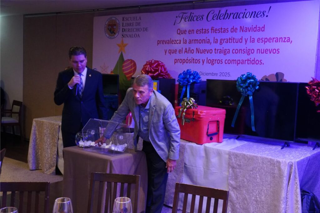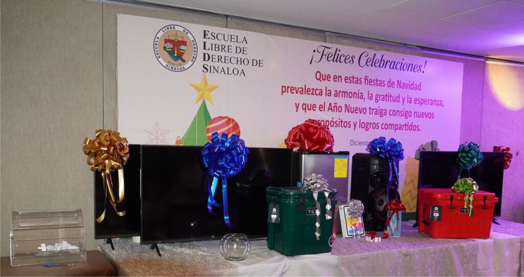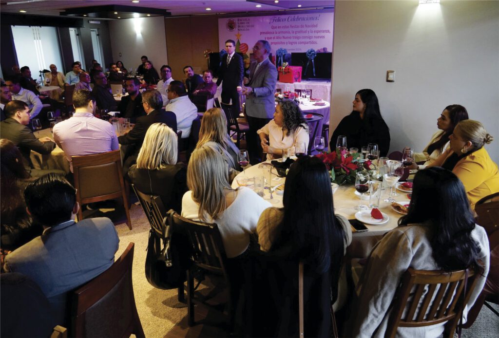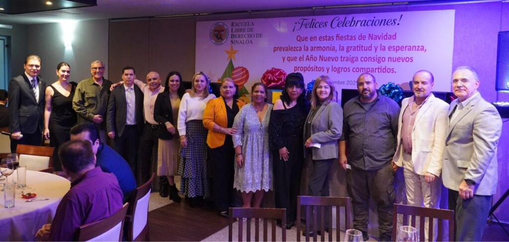 Con motivo de las fiestas de fin de año, Profesoras y Profesores de la Escuela Libre de Derecho de Sinaloa fueron agasajados por la administración de esta Casa de Estudios con la tradicional Comida Navideña, en la que nuestros Docentes departieron alegremente.