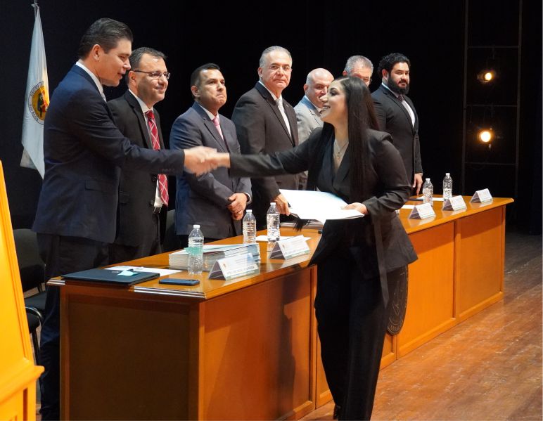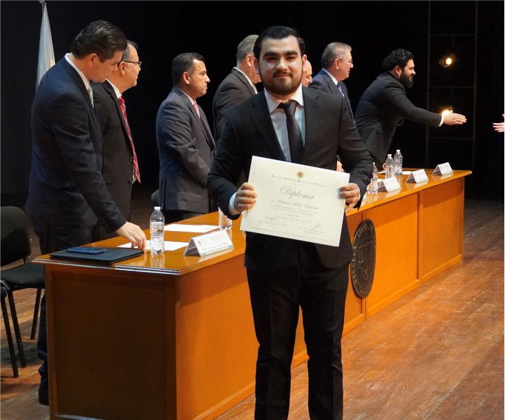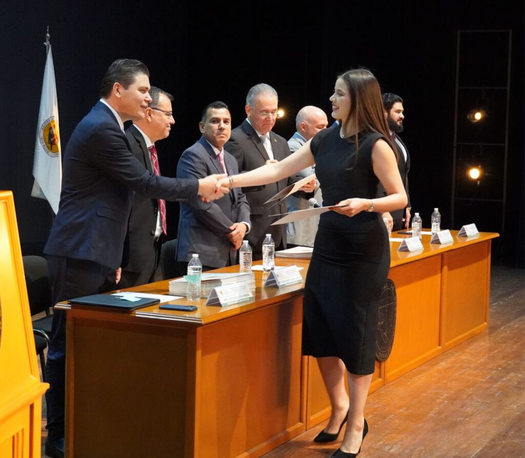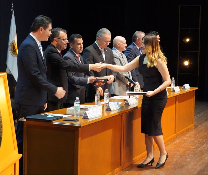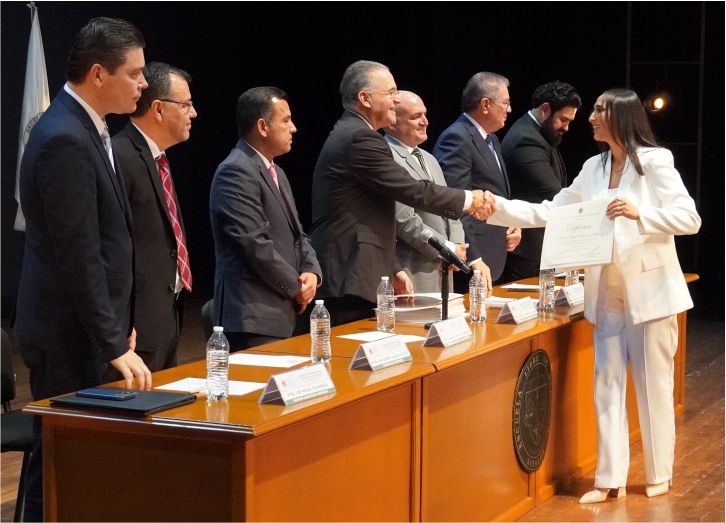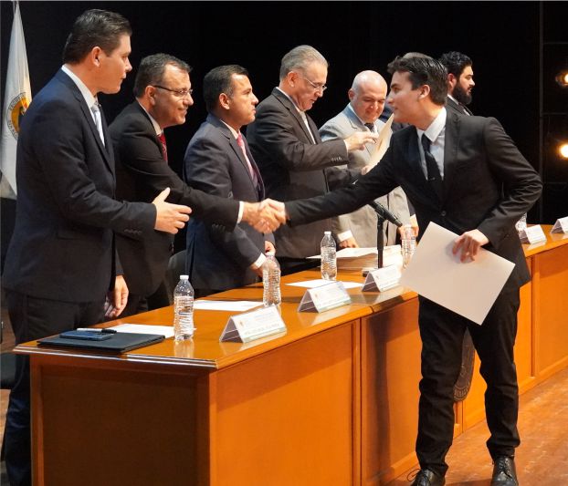 Lo anterior, durante la Ceremonia de Graduación de los dos grupos académicos, que presidieron además el Mtro. Amaury Cárdenas Espinoza, padrino de Generación del Quinto Año Grupo I; Mtro. Francisco Gil Leyva Medina, padrino de Generación del Quinto Año Grupo II; el Mtro. José Carlos Álvarez Ortega, Rector Honorario y Catedrático de la Institución; Mtro. Rafael Rodríguez López, catedrático; Mtro. Adán Alberto Salazar Gastélum, catedrático de Institución; y Mtro. José Miguel Vega Pereda, Secretario Académico de la Institución.