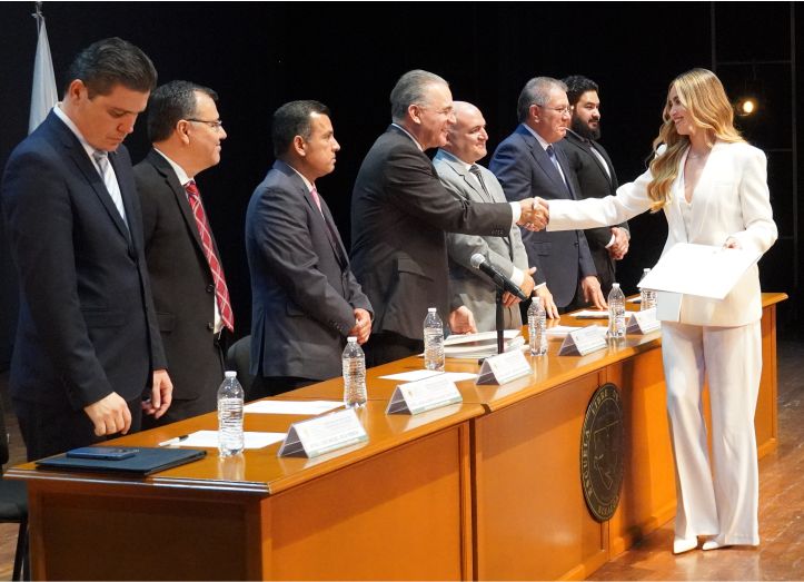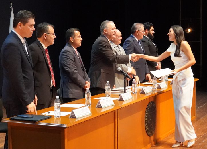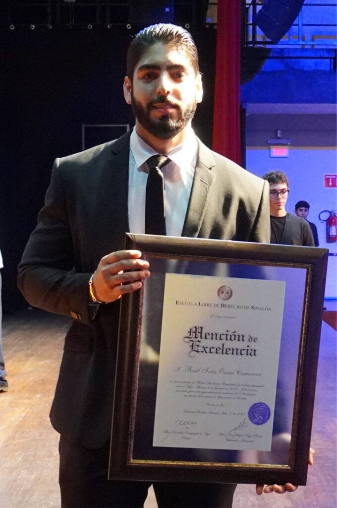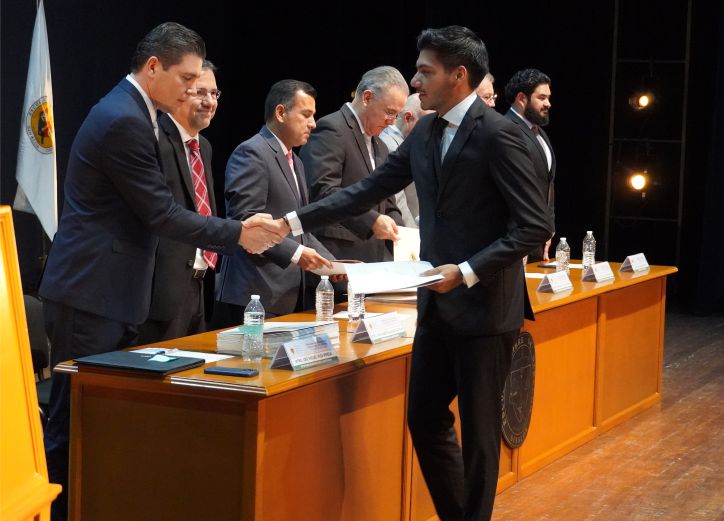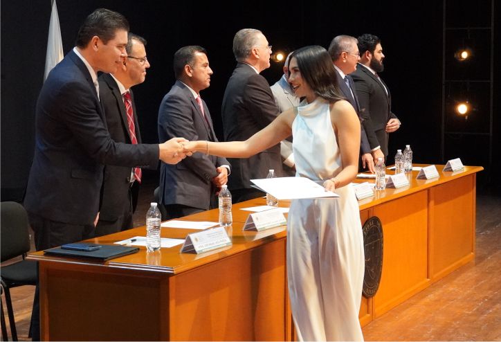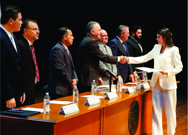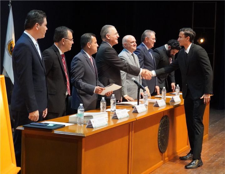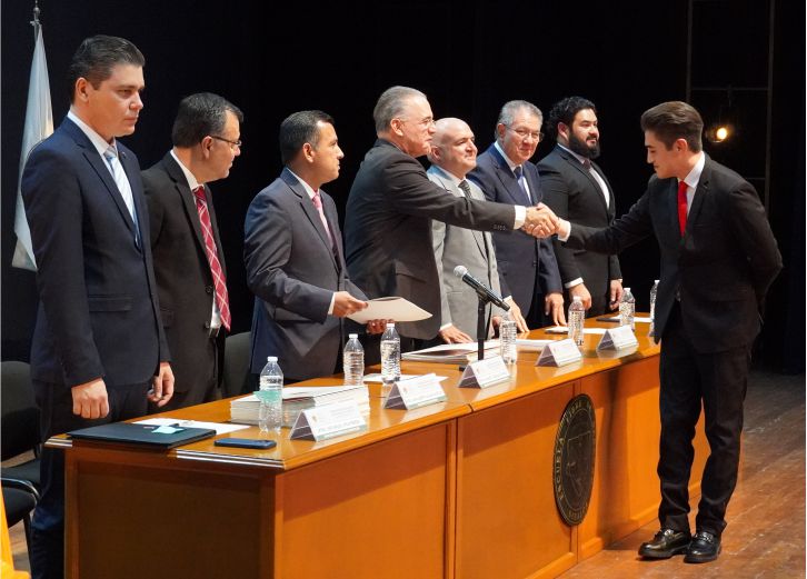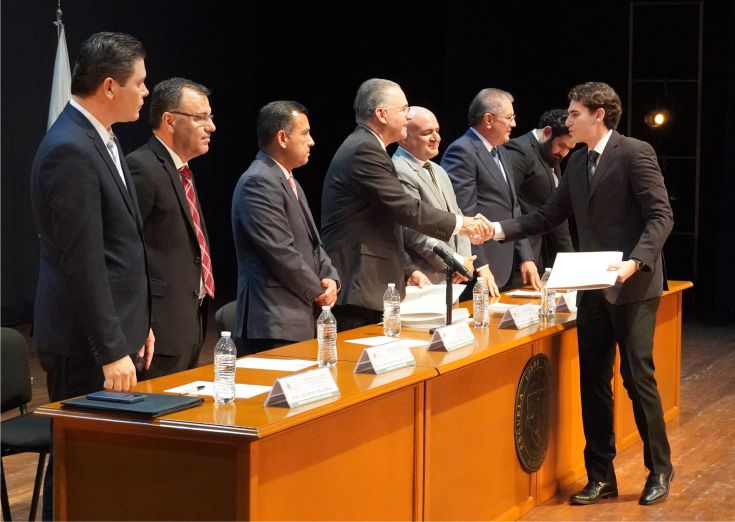 Durante el acto, el Rector de la Institución entregó la Mención de Excelencia al mejor Alumno de la Generación 2020-2025, Raúl Iván Osuna Camarena, quien habló en representación de la Generación, y dijo que “este momento representa la recompensa al compromiso inquebrantable, a la perseverancia sostenida y a la pasión, que con convicción hemos depositado a lo largo de este camino formativo”.
