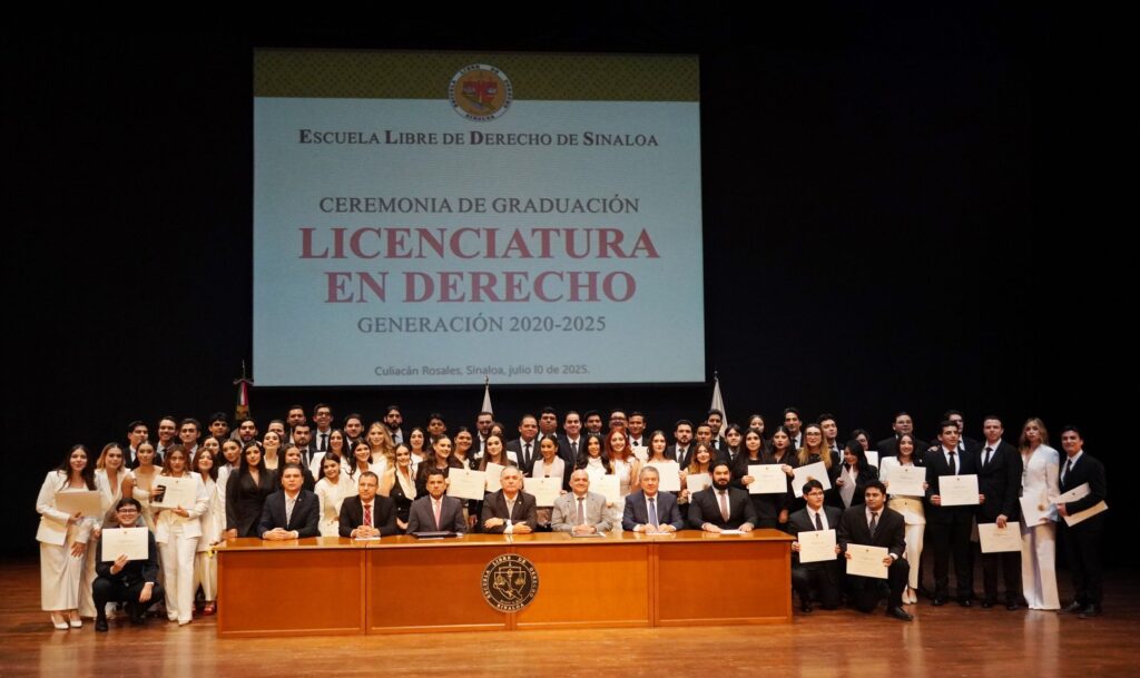 Al felicitar a los 71 integrantes de la Generación 2020-2025 de la Licenciatura en Derecho de la Escuela Libre de Derecho de Sinaloa, el Mtro. Rodolfo Campoy de la Vega, los reconoció su esfuerzo y por su resiliencia, pues iniciaron con la pandemia, de septiembre de 2020 hasta abril de 2022 y vivieron además la crisis de seguridad, de septiembre de 2024 a junio de 2025, y los exhortó a no desfallecer y a titularse y seguir preparándose a través de un posgrado.