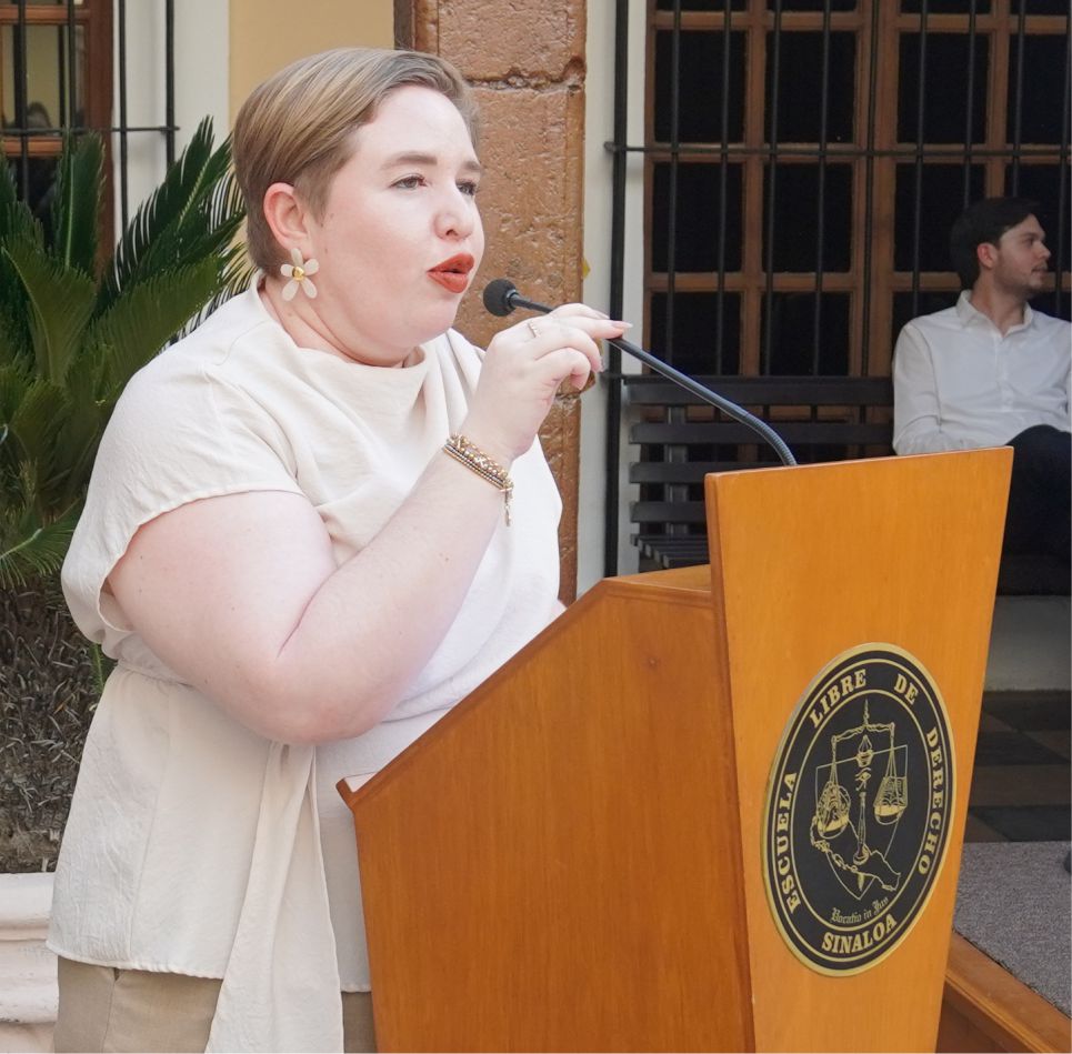 La declaratoria inaugural del nuevo ciclo estuvo a cargo de la Mtra. Carmen Guadalupe Meza Castro, quien invitó a la comunidad docente a seguir empeñando todo su esfuerzo para seguir haciendo de nuestra Escuela, una de las mejores opciones en el ámbito de las ciencias jurídicas en el noroeste del país.