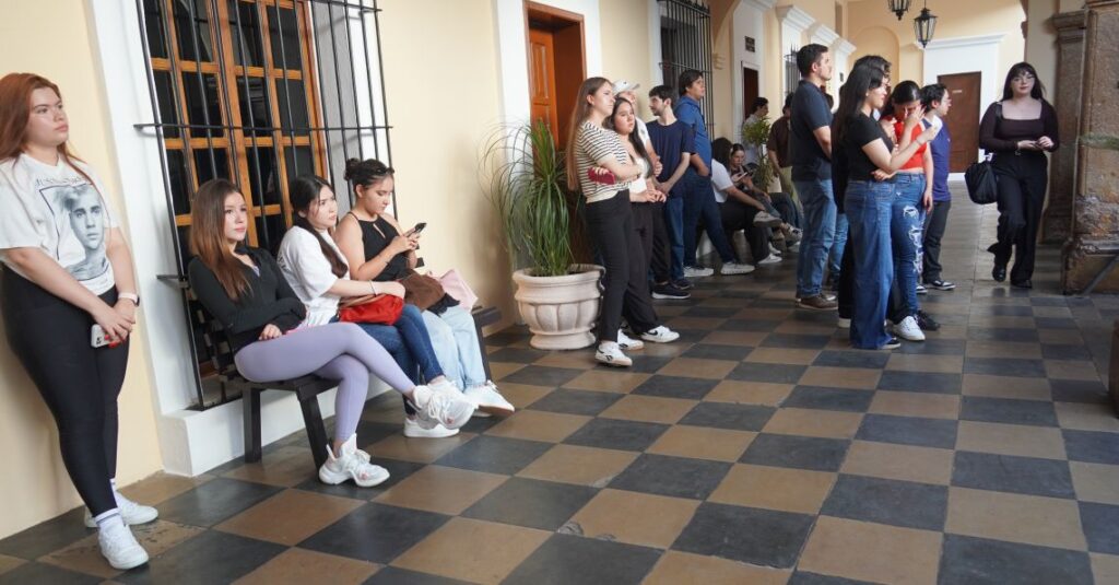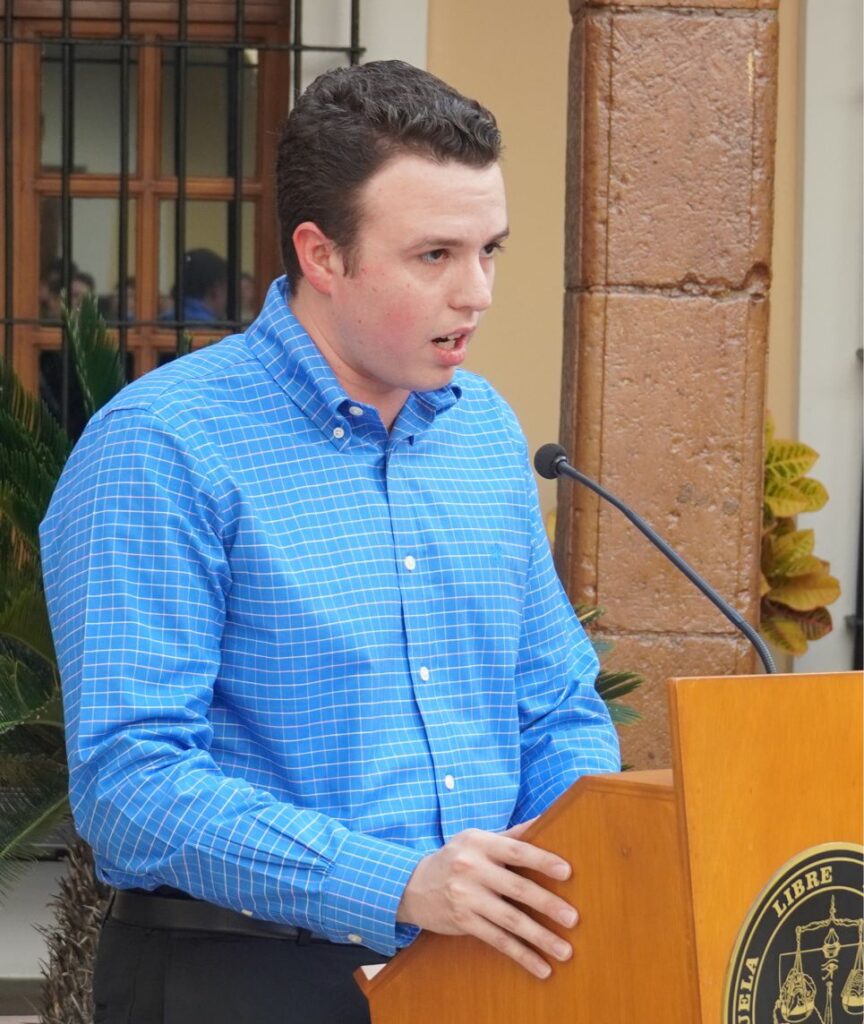A nombre de las y los Estudiantes habló el joven José Ernesto Bonilla Ruiz, Presidente de la Sociedad de Alumnas y Alumnos, quien se dirigió de manera especial a las Alumnas y Alumnos de nuevo ingreso: “Puedo asegurarles que están en una Institución donde el compromiso del personal, desde quienes nos apoyan día a día en lo operativo, las autoridades académicas y los docentes que imparten cátedra hacen que cada uno de nosotros nos sintamos orgullosos de pertenecer a esta Casa de Estudios” y recordó a sus compañeros la importancia de involucrarse en la vida estudiantil.