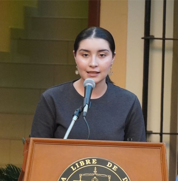 “En esta tarde, yo quiero pronunciar a nombre de quienes integramos la comunidad universitaria de la Escuela Libre de Derecho de Sinaloa, la palabra gracias, en su estado original. Ese gracias que enriquece a quienes agradecen y honran a quienes se dirigen”.