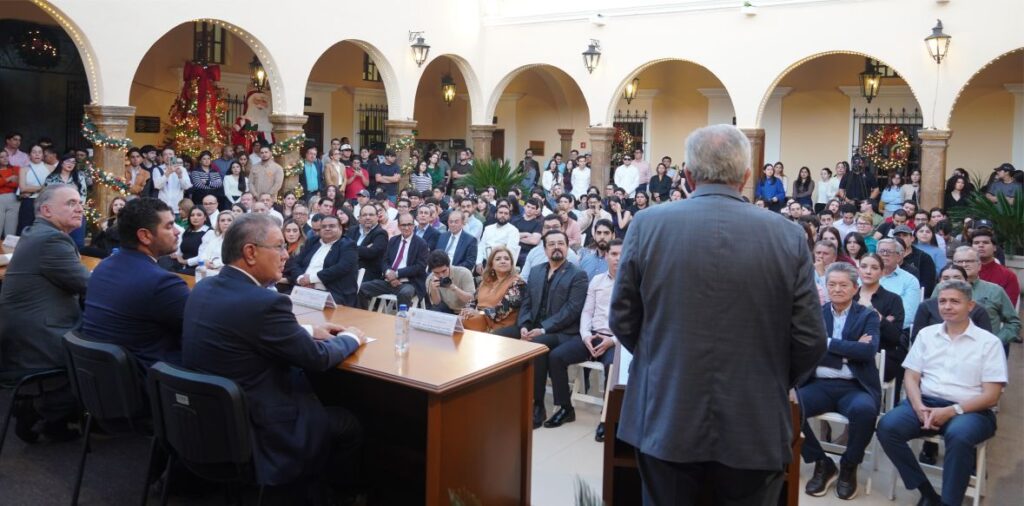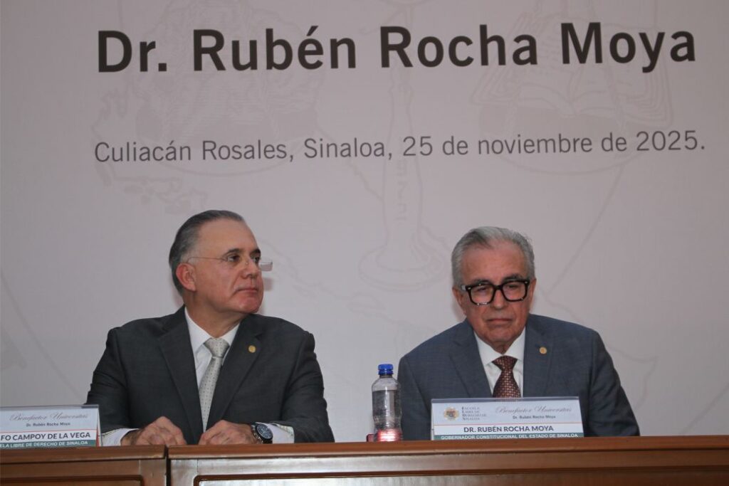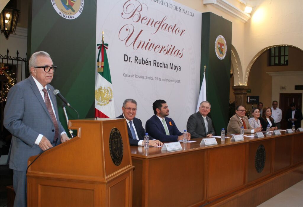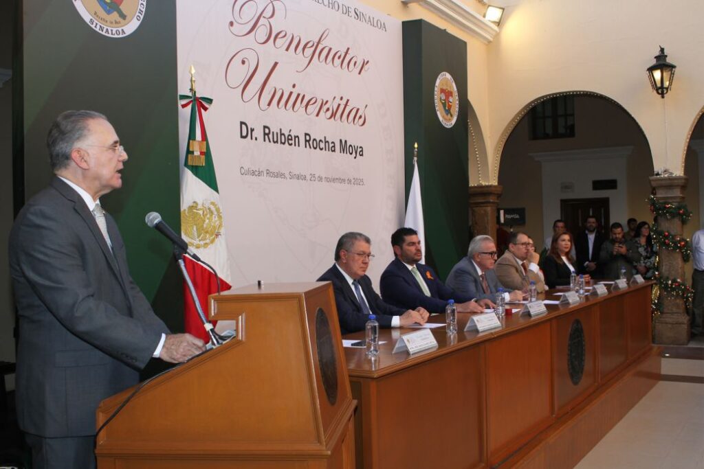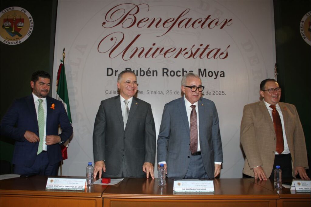 Al recibir el honor, el Gobernador Rocha Moya expresó su agradecimiento y reafirmó su compromiso con el papel estratégico de la educación en la transformación social.