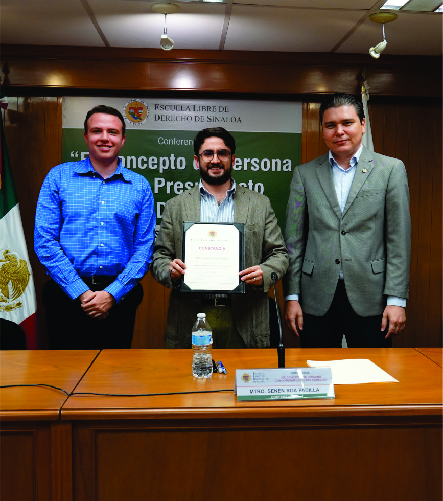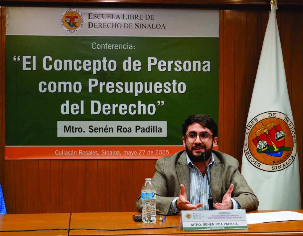 A cargo del Mtro. Senén Roa Padilla, Secretario del Juzgado Primero de Distrito del Centro Auxiliar de la Quinta Región, con residencia en Culiacán, en la Escuela Libre de Derecho de Sinaloa se llevó a cabo la conferencia “El Concepto de Persona como Presupuesto del Derecho”, en la que el especialista se refirió al tema y despejó dudas en los presentes.El Egresado de la ELDS y candidato a ocupar un cargo como Juez Mixto de Distrito de Sinaloa a través del proceso de reforma judicial operada a nivel federal, dijo que el concepto de persona es fundamental en el Derecho, y es la base de todo el sistema jurídico, ya que el ordenamiento jurídico se construye a partir de la persona, estableciendo normas y derechos que la protegen y regulan.Y es que la persona, desde una perspectiva jurídica, es el sujeto de los derechos y obligaciones, y se distingue entre personas naturales (los seres humanos) y personas jurídicas (entidades creadas por la ley como empresas, asociaciones, etcétera).Roa Padilla ha ocupado diversos cargos dentro del Poder Judicial de la Federación, y ha sido docente en la Escuela Federal de Formación Judicial, Campus Virtual, y ha tomado numerosos cursos que han consolidado su formación académica.