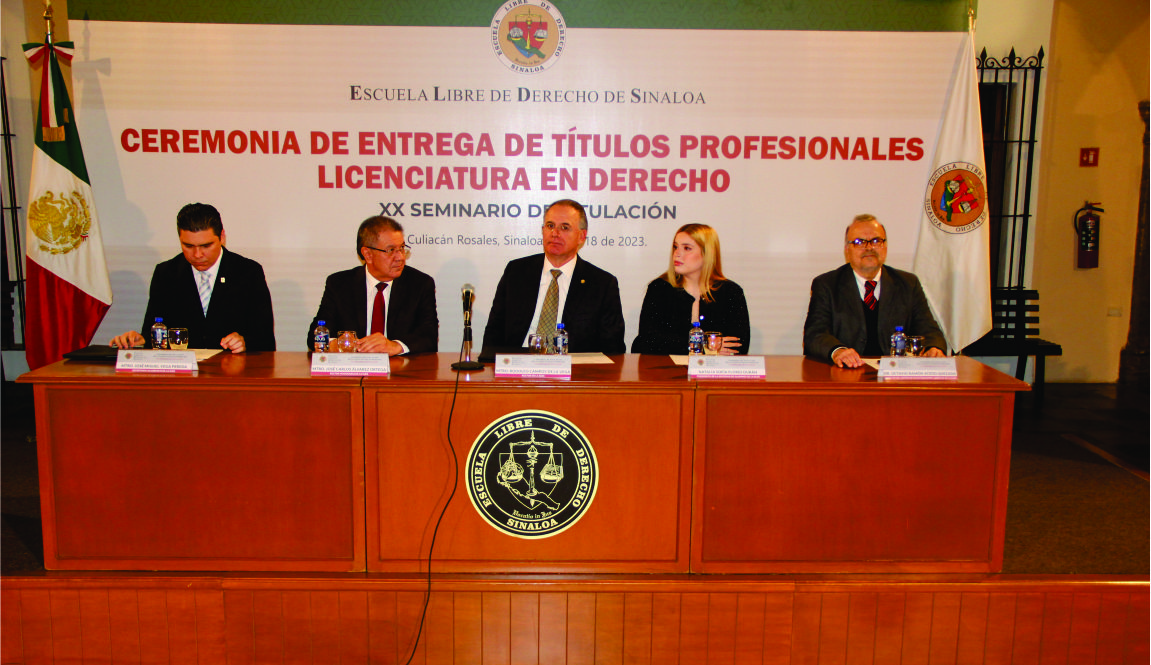 “No permitan que la soberbia e indiferencia a los problemas de la sociedad los lleven  a tener diferentes lenguas”, expresó el Mtro. Rodolfo Campoy de la Vega, Rector de la Escuela Libre de Derecho de Sinaloa, a las 26 Egresadas y Egresados de esta Casa de Estudios que recibieron sus títulos profesionales tras participar en el XX Seminario de Titulación.
