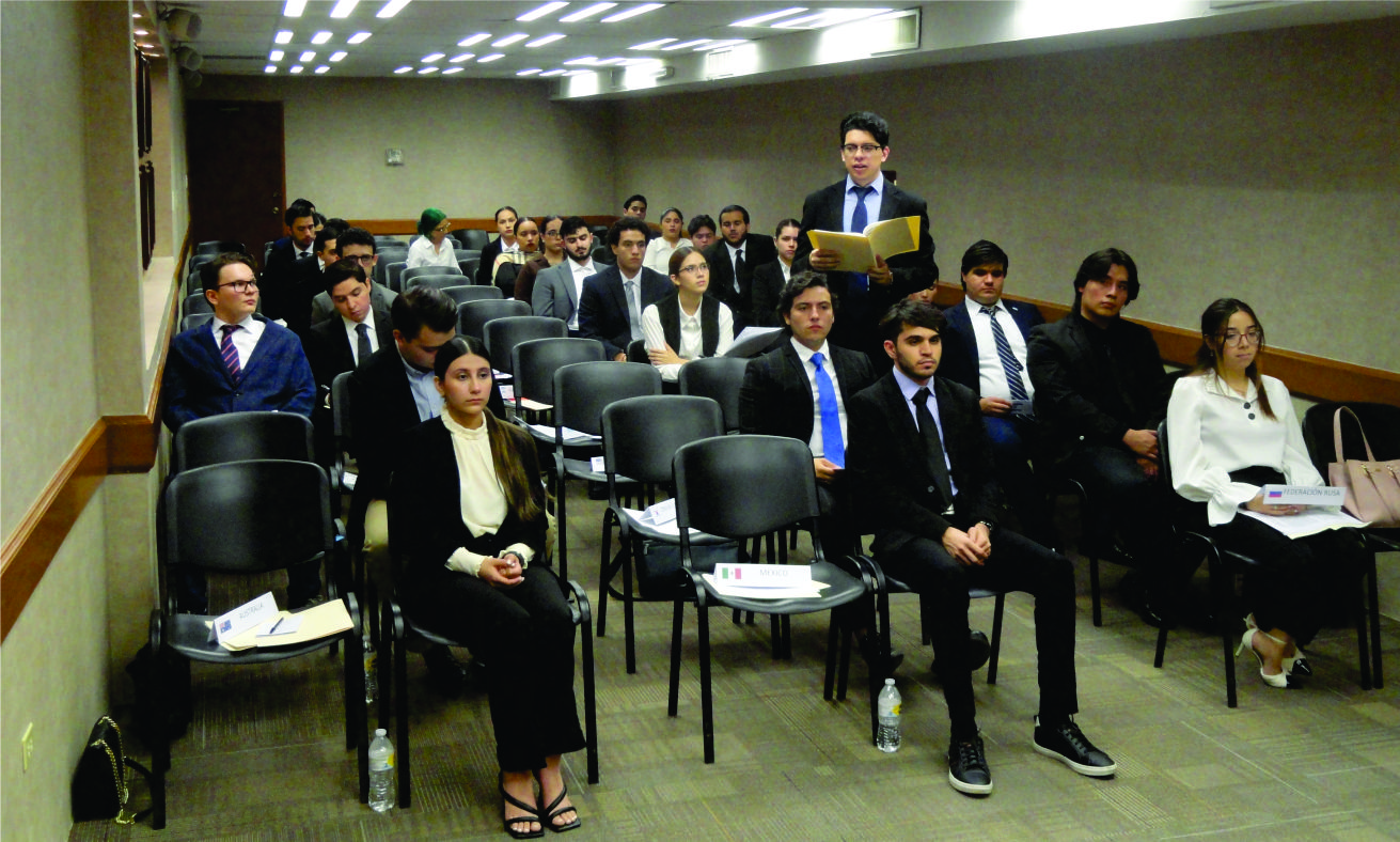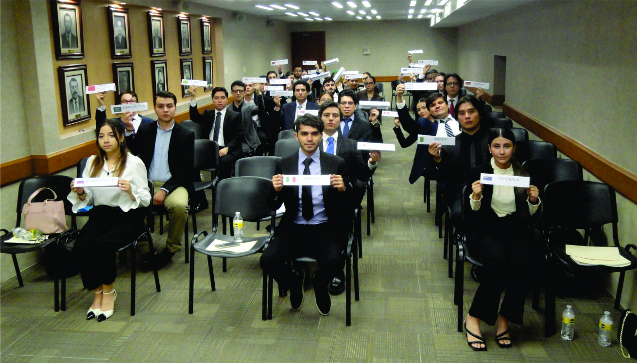 Alumnas y Alumnos del Maestro Arnel Medina Goite en la materia de “Derecho Internacional Público” de la Licenciatura en Derecho, se evaluaron para cerrar el segundo semestre del año escolar 2022-2023, tras participar en una Sesión del Modelo de las Naciones Unidas (MUN, por sus siglas en inglés) como una actividad de fin de cursos realizada en el Salón de Directores de nuestra Casa de Estudios.