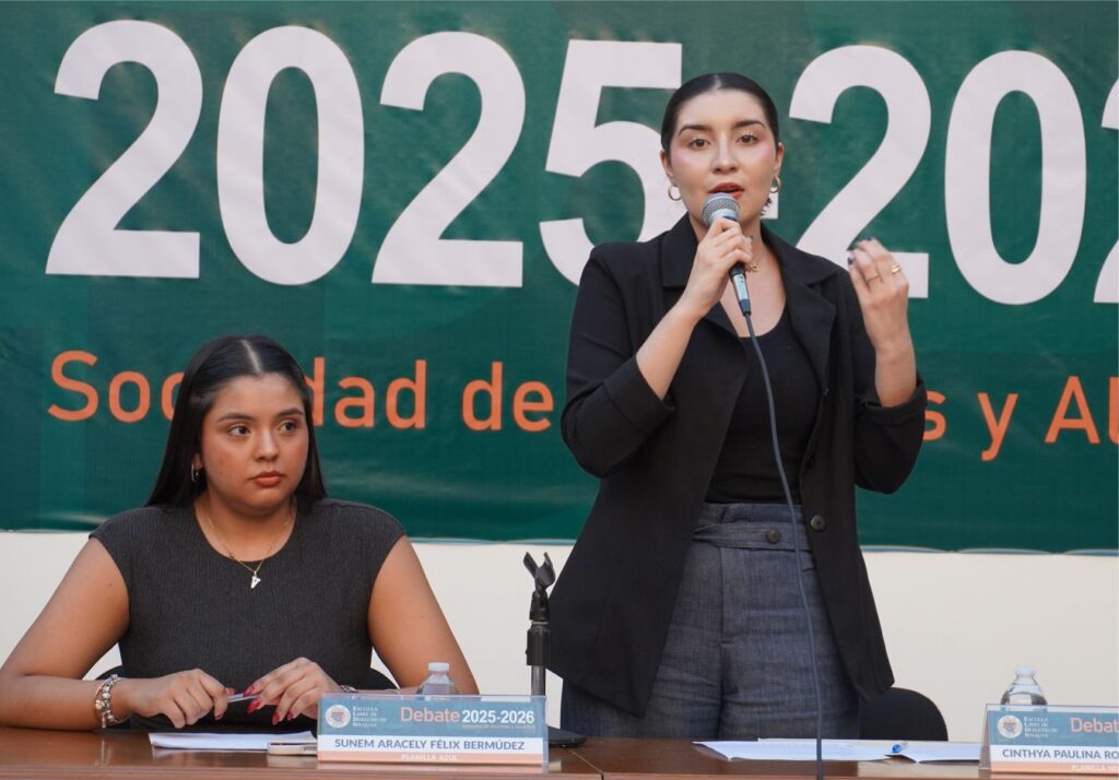 En el debate participaron las candidatas por parte de las tres planillas: Cinthya Paulina Rochín Magaña (planilla negra), Michelle Hernández Rodríguez (planilla blanca) y Sunem Aracely Félix Bermúdez (planilla azul), quienes defendieron sus propuestas y, con base en su actuación, afirmaron o precisaron la intención del voto en sus compañeros.