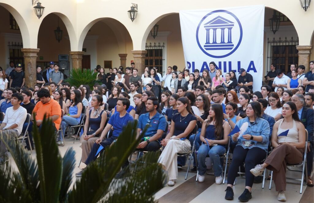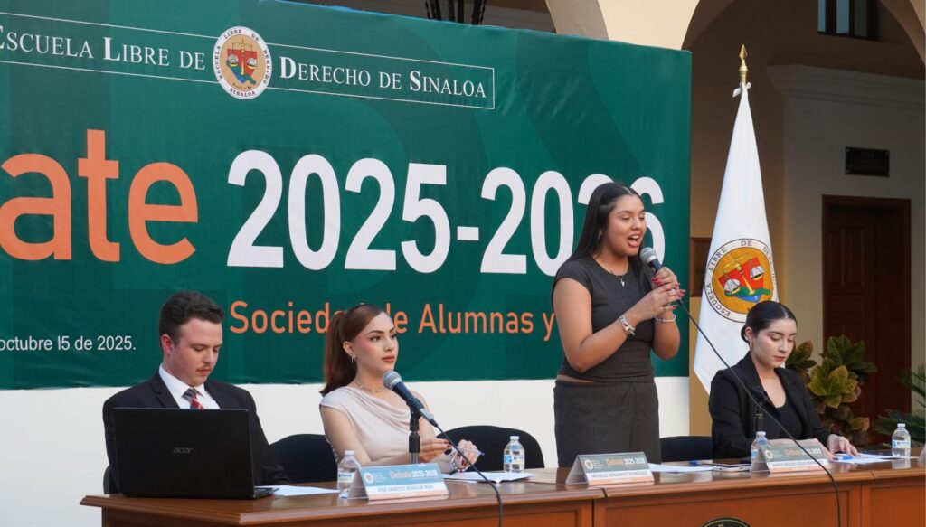 En el Patio Central de la Institución, las Candidatas a presidir la nueva Mesa Directiva de la Sociedad de Alumnas y Alumnos de la Escuela Libre de Derecho de Sinaloa participaron en un aleccionador debate en el que presentaron y defendieron sus propuestas y programas de trabajo con actividades académicas, deportivas y sociales a realizar durante el ciclo escolar 2025-2026.