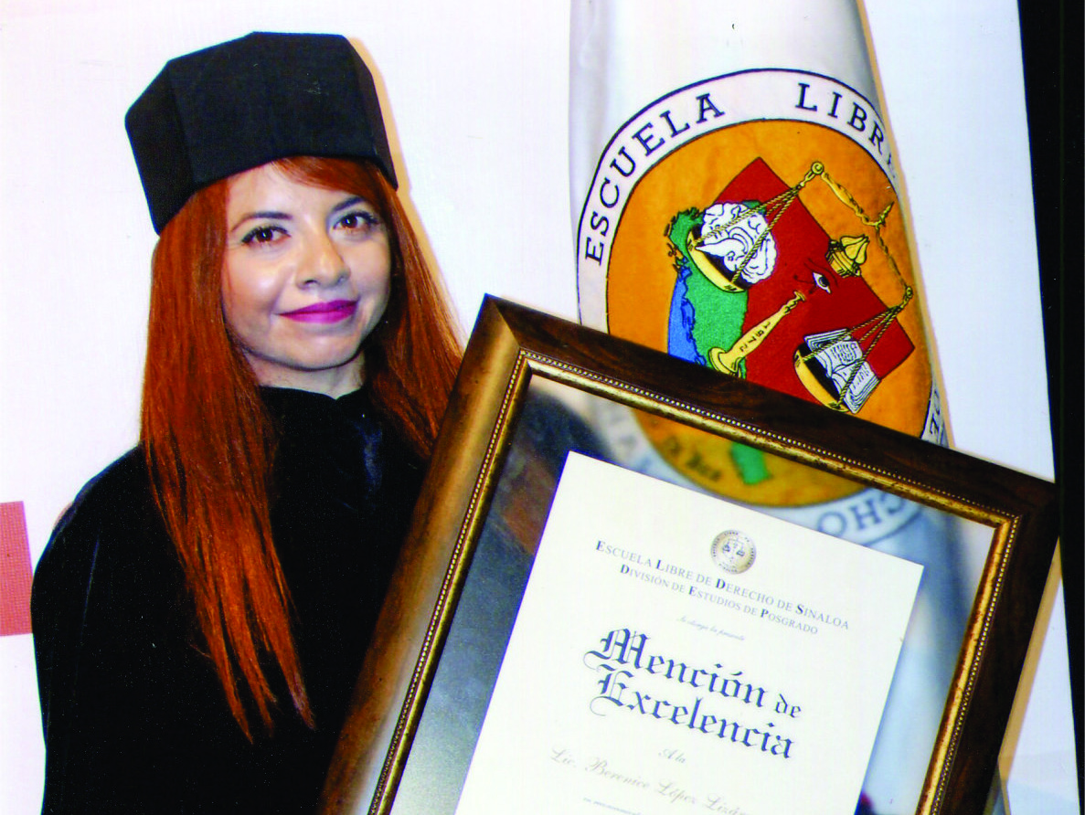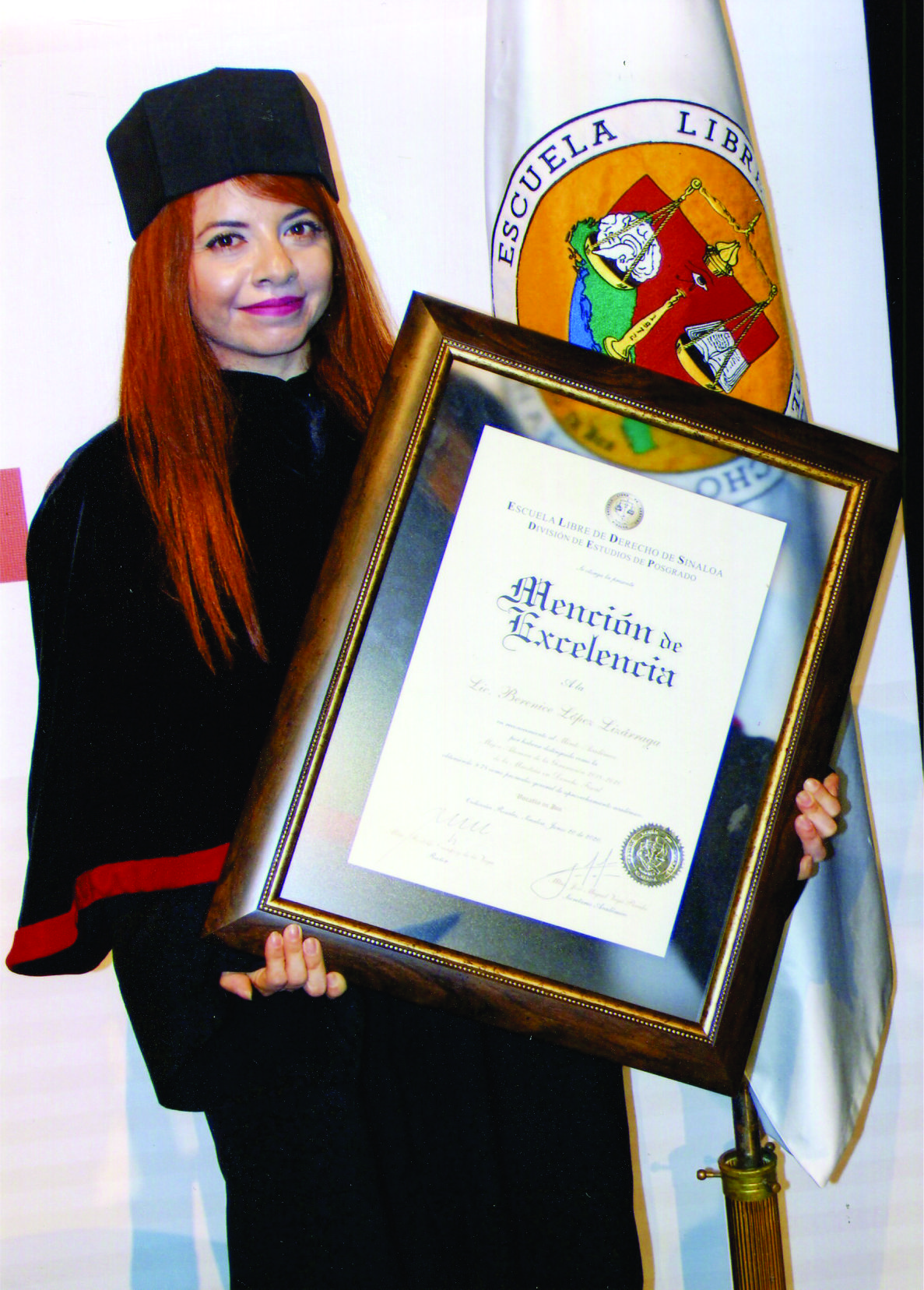 Lo anterior, en la Ceremonia de Entrega de Grados Académicos a los participantes en el X Seminario de Actualización para la Obtención de Grado Académico, para la Maestría en Derecho Fiscal, en la que fue honrada con Mención de Excelencia por su alto desempeño académico.