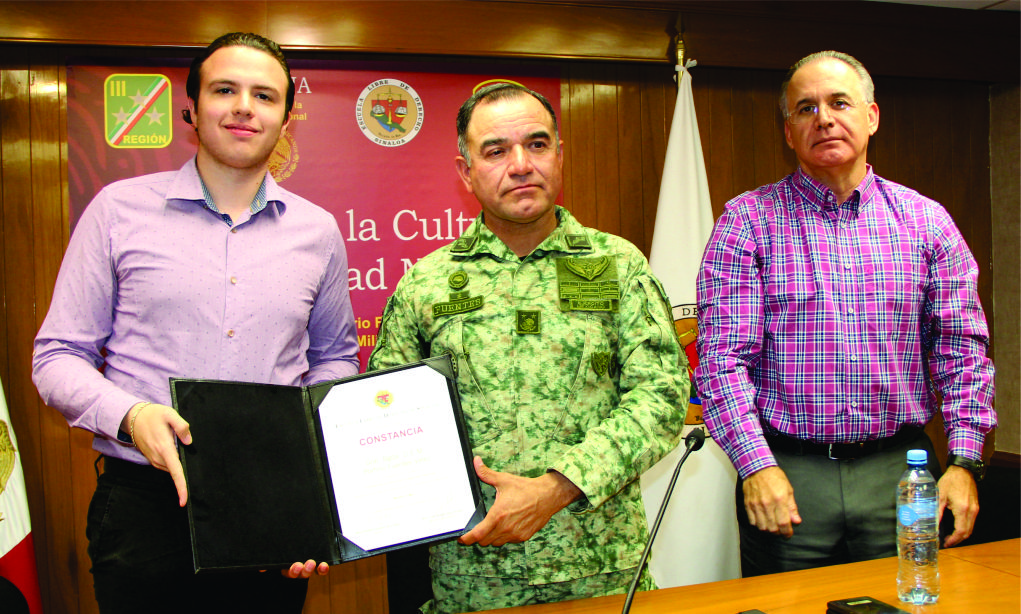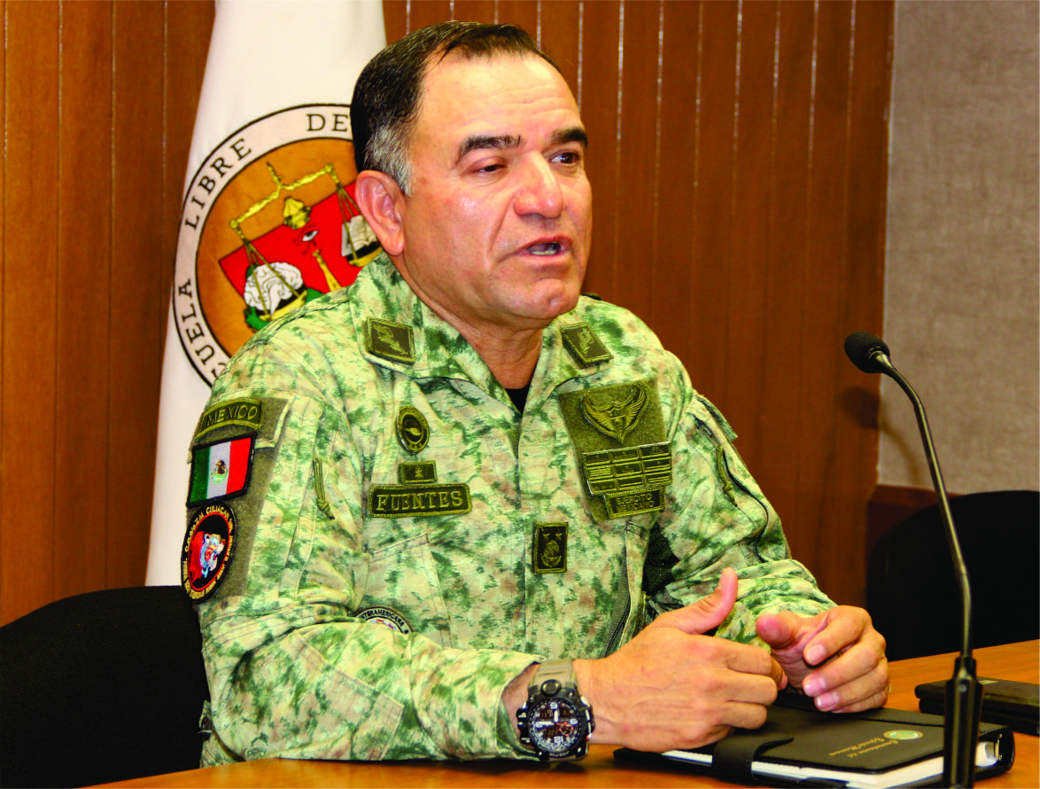 El General de Brigada Diplomado de Estado Mayor, Porfirio Fuentes Vélez, Comandante de la Novena Zona Militar, visitó las instalaciones de la Escuela Libre de Derecho de Sinaloa, donde dio una conferencia sobre Difusión de la Cultura de la Seguridad Nacional, ante la Comunidad Estudiantil.