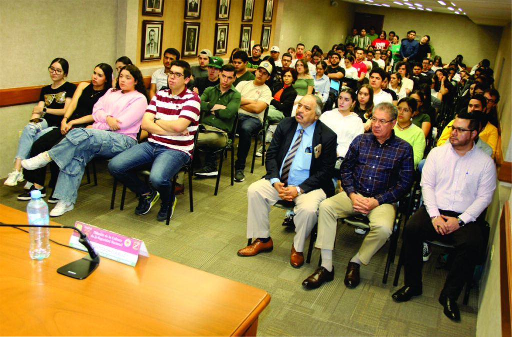 Durante su charla dijo que el objetivo principal de la seguridad nacional es garantizar la conservación, la estabilidad y la continuidad de la sociedad, así como la vida y bienestar de sus ciudadanas y ciudadanos.